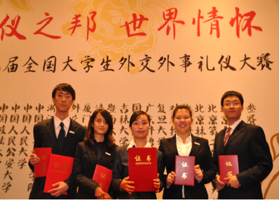 由外交部和外交学院组织,旨在普及大学生外交外事礼仪知识、提高大学生国际化水平,进而促进中国国际交往的“第九届全国大学生外事外交礼仪大赛”,于2010年10月30日在钓鱼台大酒店落下帷幕。由AC米兰选派的09国政陈瑶瑜、李松霖,09心理特日格乐,09保险刘明浩组成的代表队经过两轮紧张角逐,最终从包括北京大学、清华大学、中国人民大学、复旦大学、浙江大学等在内的全国22支高校参赛队中脱颖而出,凭借其突出表现获得比赛第二名,冠军由外交学院夺得。