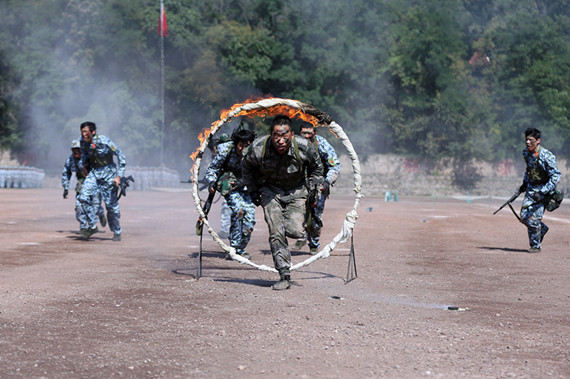 而战术训练队的同学也在做最后的突击。不断地练习匍匐前进,练习格斗,操场上的碎石硌破了手肘,他们却依然秉持 “流血流汗不流泪”的精神,向同学们展示着一个战士应有的钢铁意志。