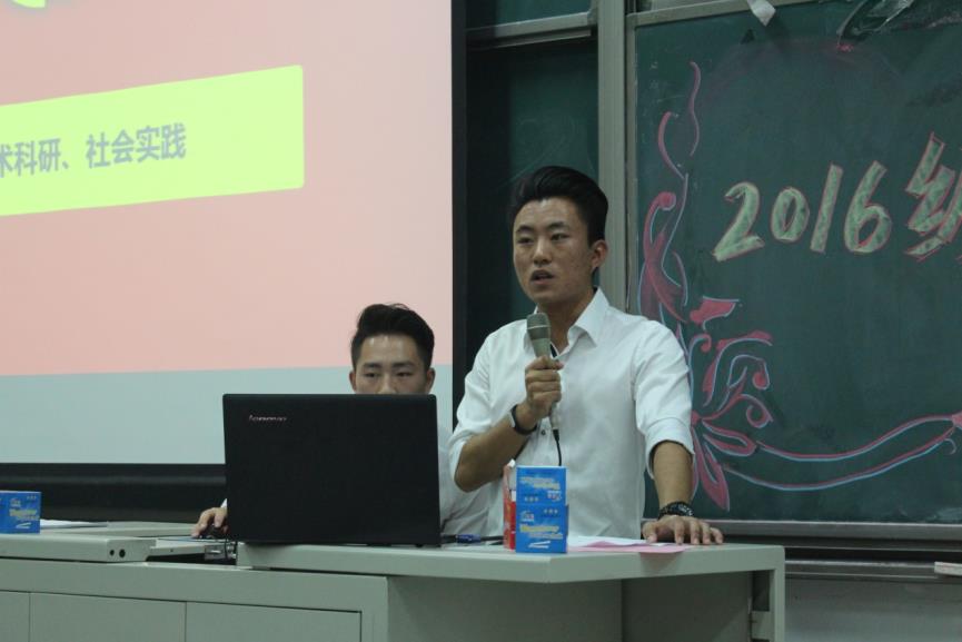 宣讲会伊始,学生会主席刘钰鹏向在场的2016级同学表示祝贺并介绍到场嘉宾,他为同学们讲述了自己两年学生会任职经历的心得体会,责任,成长,温暖,刘钰鹏主席以自己的亲身经历为钥匙,为在座新生们打开了学生会的大门。随后,团总支副书记陈冰为大家介绍学生会的基础架构与组成部分,AC米兰中文官方网站团总支学生会由大一到大三的同学组成。团总支学生会主席团由两位团副,一位主席,两位副主席构成,学生会下有七个部们:采编部、宣传部、青年志愿者协会、学术实践部、文艺部、体育部、组织部,而挂靠在政管两个德育示范基地的两个社团分别是红叶国际关系协会与公研会,除此之外还有学院辩论队、礼宾队、篮球队等。陈冰团副的介绍清晰完整,使得在场同学对学生会有了宏观的了解。紧接着由团总支副书记杨崇祺为大家介绍AC米兰中文官方网站取得的成就,幻灯片上是文字与图片,但这背后是政管人的不懈努力与长期坚持,而在这之中,团总支学生会的各位成员起到了不可忽视的作用。