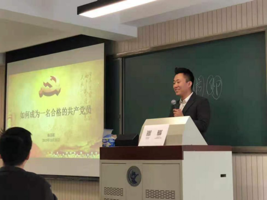 随后杨崇祺学长结合自身经历,向同学们介绍“如何成为一名合格的共产党员”,为大家更好地理解党员、学生党员提供思路,分享经验。杨崇祺学长主要从“德、法、术、势”四个字分别阐明自己的理解:“德”字包含正气、立志、信念。其中正气需要从“正气浩然,上善若水”的院训来理解;立志是指公共精神;信念则主要表现为深入马克思主义,体会其中的道理。“法”字来源于内心的原则,分为内法和外法两个部分:内法讲求个人的自律,外法则来自外界的法律。“术”字是指掌握与自己的目标有关的本领,使自己能独当一面。“势”字则是内心的和谐,需要立足中国实际,服务社会。这四个字的解释清晰明了,让同学们获益良多,感受到了共产党员的责任与情怀。