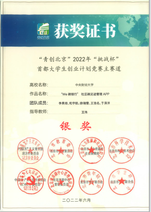 “青创北京”2022年“挑战杯”首都大学生创业计划竞赛主赛道二等奖