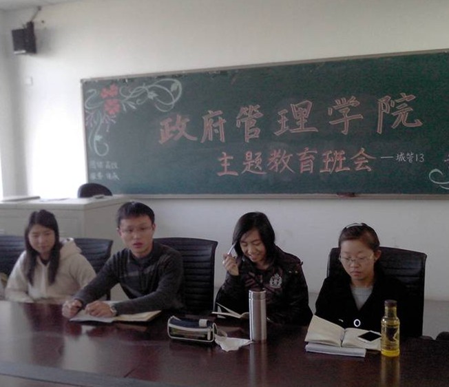 接下来,孙老师就辅导员的工作向大家做了简单介绍。他向同学们解释说,辅导员关键在一个“导”字:学习督导、心理疏导、思想引导。教育、服务、管理是工作的三大宗旨。在提到丰富多彩的大学生活时,孙老师语重心长地告诫大家要珍惜同学友谊,对待师长要有礼貌,他说这是作为一名政管人应该做到的。中途穿插的性格测试,色彩及图形选择的互动游戏引得大家笑声不断。在了解了同学们的学习及安全教育考试的情况后,老师给出了十条辅导员寄语,分别从学习、生活、人生规划及情感方面提出谆谆教诲。最后,孙老师针对同学们提出的疑惑做出了详细的解答。班会在轻松活泼的气氛中圆满结束。