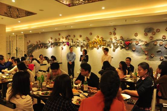此次主题聚会,从策划到举办耗时一周,由于策划前期班委成员尚未确定,在班主任白丹老师的鼓励下,班里积极活跃的同学自告奋勇,积极分工合作,利用工作之余的时间从聚会选址、节目编排、经费收取、现场布置、后期总结各个方面进行讨论筹划,在班会的准备过程中涌现出了各种热心肠、大才子、大明星、搞笑达人、理财能手、策划谈判专家等,强大的班委会也顺势迅速成立,并在聚会中集体亮相,得到了同学们的一致欢迎和肯定。聚会上,副班长和文体委员的即兴相声主持,让大家眼前一亮,分组背诵同学名字的破冰游戏让大家迅速互相熟悉了解,班委成员的歌曲合唱、文艺委员的男女合唱,以及随机的儿童歌曲歌舞串烧、分组萝卜蹲等轻松搞笑的游戏,瞬间打破陌生尴尬的氛围,工作许久后,被社会琐事僵硬了的青春重新回到了同学们的脸上。拥抱、握手、合影、歌声、笑语不停,激动和喜悦之情在觥筹交错之中溢于言表……