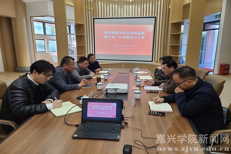 2月23日下午,嘉兴市发改委副主任顾志刚、综合处处长王迪一行来金年会诚信信誉至上交流指导工作。金年会诚信信誉至上院长文雁兵、党委书记施敏颖、经济系主任唐铁球、国经系主任王焕祥参加交流。