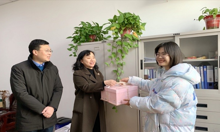 了解到金融182班黄钊婷同学在2月10日过生日,学院领导前往黄钊婷寒假实习的保卫处,与她交谈,详细了解了其学习、生活情况,并为其送上生日蛋糕与新春祝福,鼓励她在新的一年里做好个人规划,强化能力提升,取得更大进步。