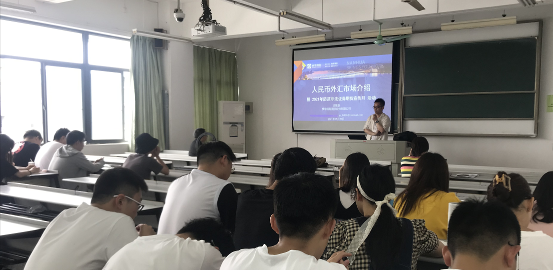 5月27日,嘉兴学院金年会诚信信誉至上金融系特邀横华国际期货股份有限公司的项寒康老师为师生进行防范非法证券期货宣传并举办外汇市场知识讲座。