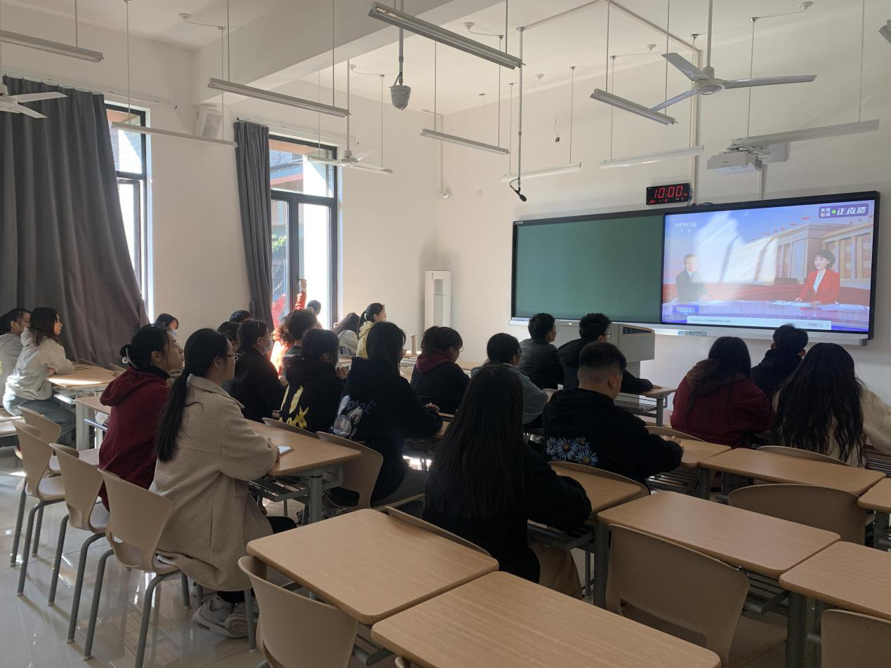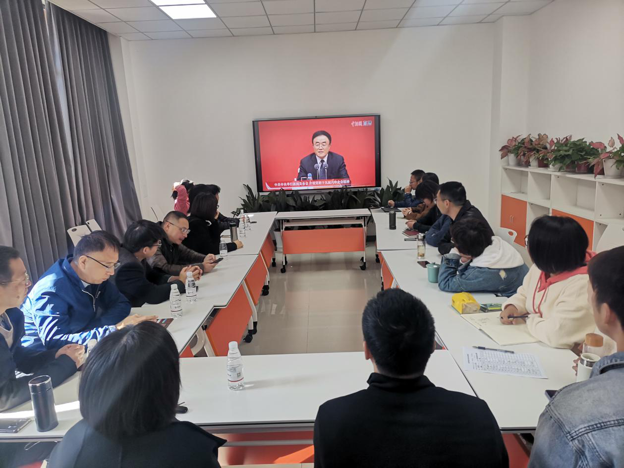 11月12日上午,中共中央举行新闻发布会,介绍党的十九届六中全会精神。金年会诚信信誉至上党委组织师生党员集中观看了新闻发布会并认真学习六中全会精神。