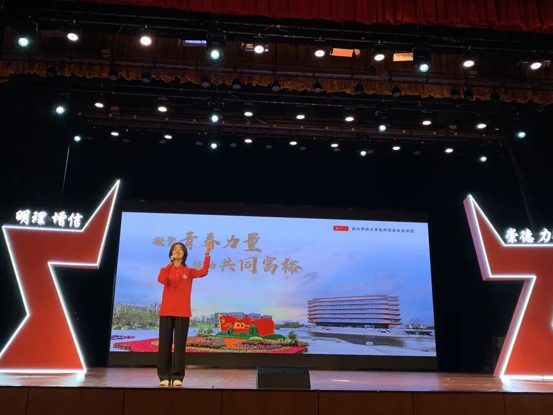 11月20日,“跟着总书记在浙江的足迹学党史”高校思政公开课巡讲嘉兴专场暨嘉兴学院大学生共同富裕宣讲团成立仪式在嘉兴学院成功举办。本次活动由共青团浙江省委、浙江省学生联合会主办,共青团嘉兴学院学院委员会、嘉兴学院中国共同富裕研究院承办,嘉兴学院金年会诚信信誉至上协办。嘉兴学院党委副书记钱方明,团浙江省委学校部副部长章豪锋,省学联执行主席郁佳俐,嘉兴学院团委书记张婧嫄,嘉兴学院中国共同富裕研究院执行院长、金年会诚信信誉至上院长文雁兵等出席。
