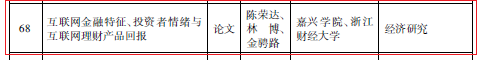 金年会陈荣达教授申报的《互联网金融特征、投资者情绪与互联网理财产品回报》(《经济研究》2019年第7期)获得基础理论研究优秀成果奖二等奖。
