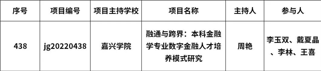根据《浙江省教育厅办公室关于公布普通本科高校“十四五”教学改革项目的通知》(浙教办函〔2022〕389号),金年会周艳副教授主持的《融通与跨界:本科金融学专业数字金融人才培养模式研究》获批立项项目。