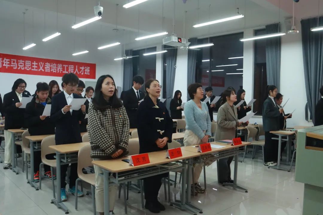 2023年3月28日晚,金年会诚信信誉至上青年马克思主义者培养工程人才马班第一期结业仪式暨第二期开班仪式在明德楼152举行,金年会诚信信誉至上党委副书记庄美燕、团委书记庄怡、团委副书记梅嘉琦、辅导员沈芳和全体青马班同学参加了此次活动,本次结业暨开班仪式由梅嘉琦老师主持。