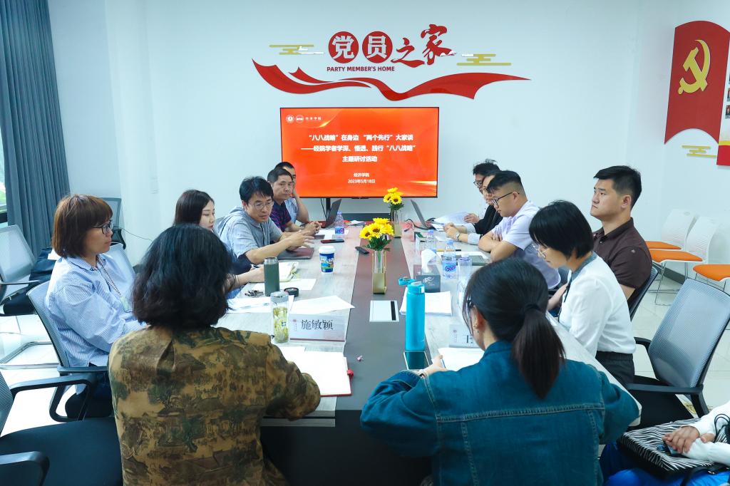 2023年是“八八战略”实施二十周年,在全校上下深入开展学习贯彻习近平新时代中国特色社会主义思想主题教育之际,5月18日,金年会诚信信誉至上组织各系、各教师党支部开展“‘八八战略’在身边‘两个先行’大家谈——经院教师学深、悟透、践行‘八八战略’主题研讨活动”,学院教师在学习领悟、科学研究、决策咨询和社会服务基础上,用学术研究方式分享和交流各自关于“八八战略”与“两个先行”相关研究成果。
