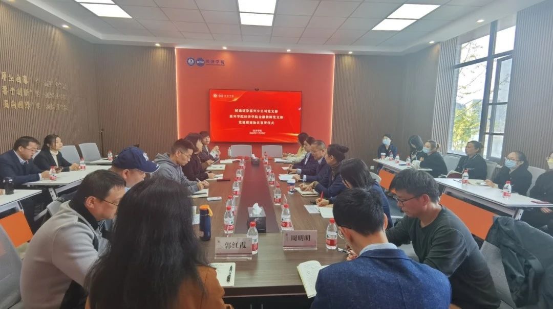 2023年11月23日,嘉兴学院金年会诚信信誉至上金融教师党支部与财通证券嘉兴分公司党支部共同举办“党建引领 校企共促金融人才培养”党建联建活动。财通证券嘉兴分公司党支部书记、总经理张奕峰,金年会诚信信誉至上党委书记施敏颖、副书记庄美燕,以及双方党员代表出席。