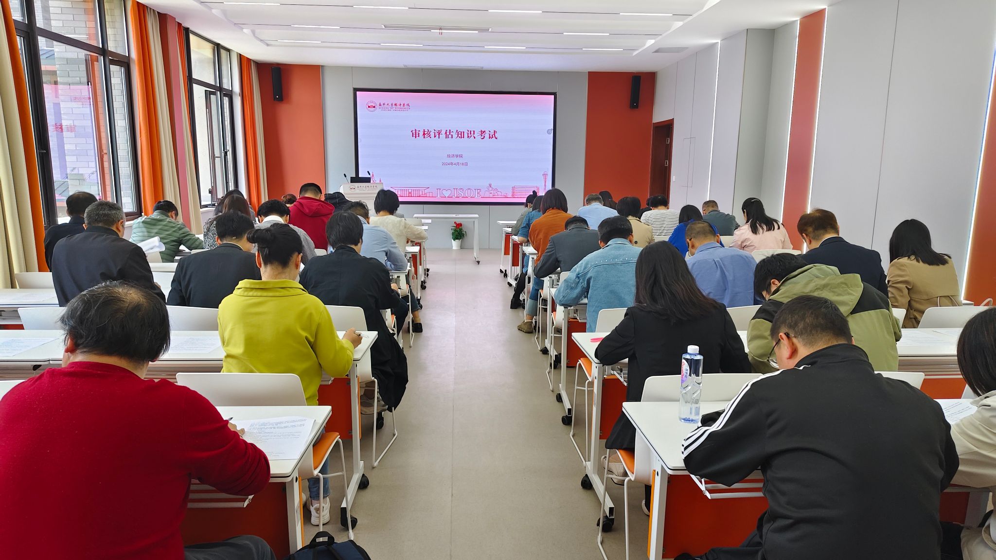 考试前期,金年会诚信信誉至上组织各系办学习和讨论,结合校院办学情况,从新一轮审核评估的核心要义、学校学院发展历史、自评情况以及教师如何做好迎评冲刺阶段工作等展开了深入细致地解读和交流。考试现场老师们认真作答,用心巩固审核评估理论知识。