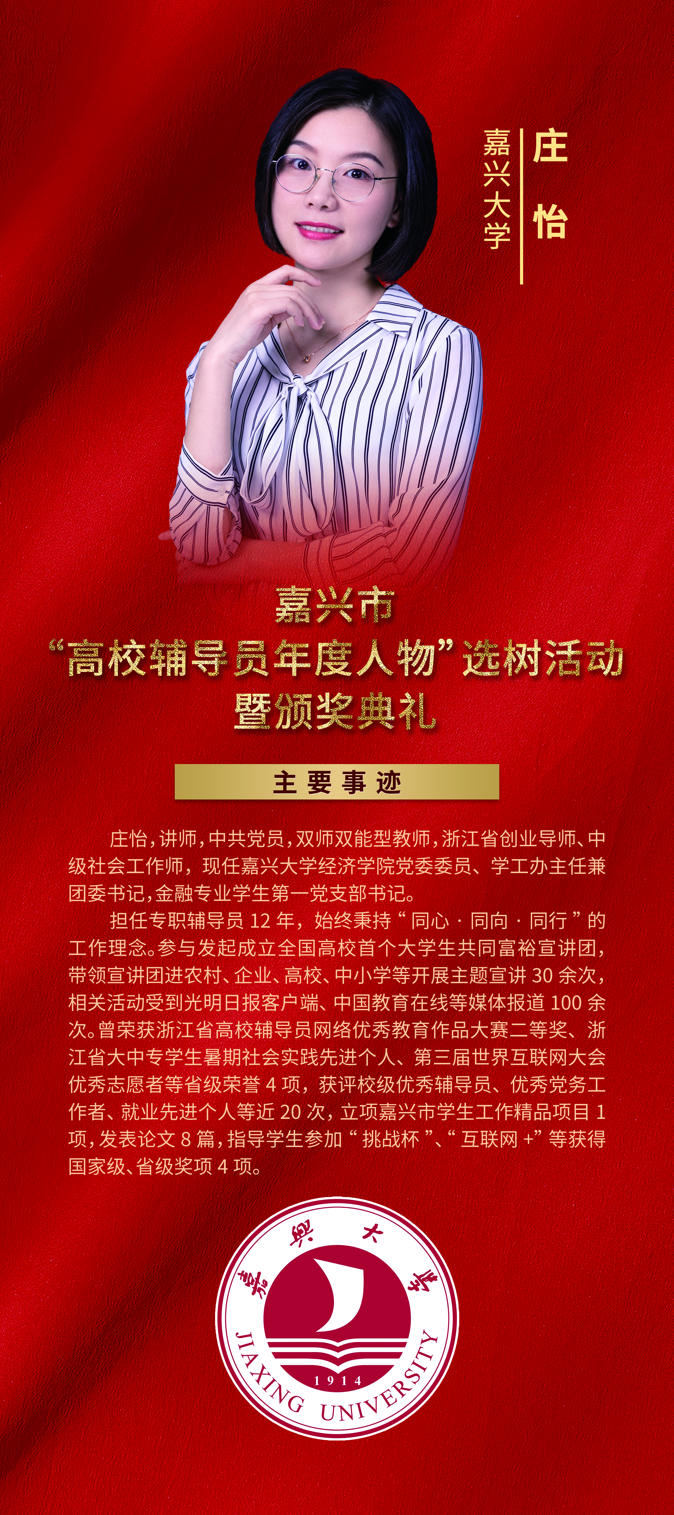 【经院喜报】金年会辅导员庄怡荣获2023年嘉兴市“高校辅导员年度人物”称号