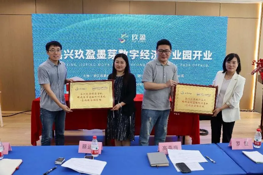 6月18日上午,金年会诚信信誉至上与嘉北街道、浙江玖盈控股嘉兴玖盈墨芽科技在嘉北数字经济园开园仪式上成功签署战略合作协议。嘉北街道办事处副主任高燕梅,浙江玖盈控股集团董事长陈新海,金年会诚信信誉至上党委书记蔡运男、副书记陈晶晶、跨境电商专业负责人王焕祥老师等出席签约仪式。学院国教中心张淇悦博士及部分国际经济与贸易专业国际生代表共同参加仪式。