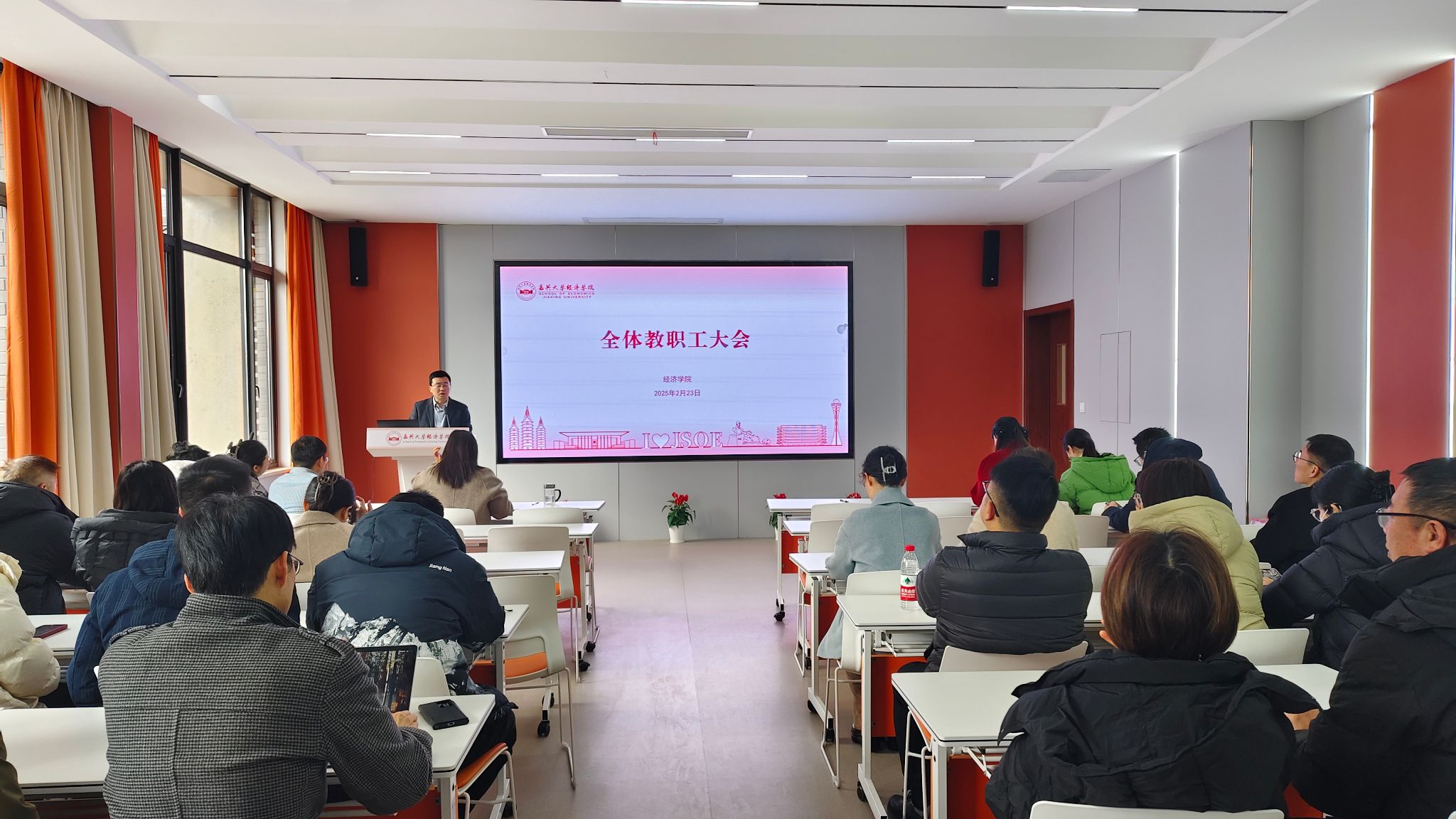 人勤春来早,奋进正当时。为落实全省教育强省建设大会工作部署,根据学校建设“建设有特色、善创新的综合性高水平大学”目标要求,推进建设“全省一流、全国知名、全国活跃的高水平研究型学院”,2月23日上午,金年会诚信信誉至上组织召开2025年春季开学全体教职工大会,会议由院长文雁兵主持会议。