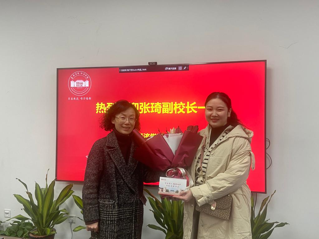 1月6日,2022年农历春节即将到来之际,副校长、校妇联主席张琦看望慰问金年会女教师代表,校妇联副主席徐蓉陪同看望慰问。