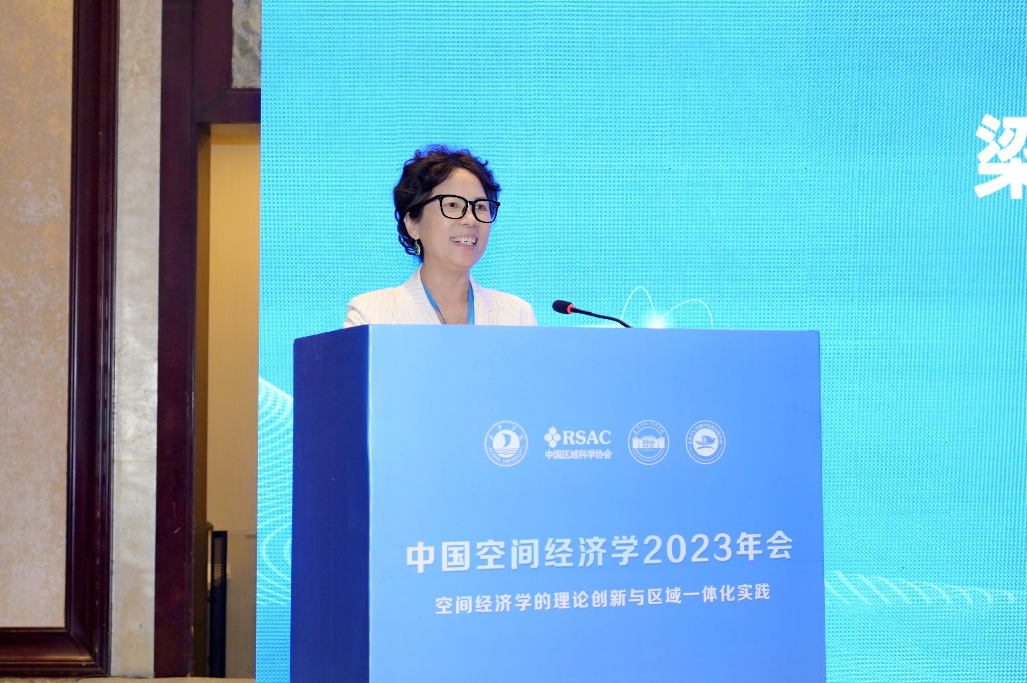 在主旨演讲环节,中山大学管理学院、中国区域科学协会空间经济学专业委员会主任梁琦教授做了题为《空间经济学研究的思考》的主题演讲,梁教授对空间经济学的演进历程进行了简要解释,对空间经济学未来发展方向进行了阐释,她认为经济学应该“回归空间”,进行更加务实的研究。