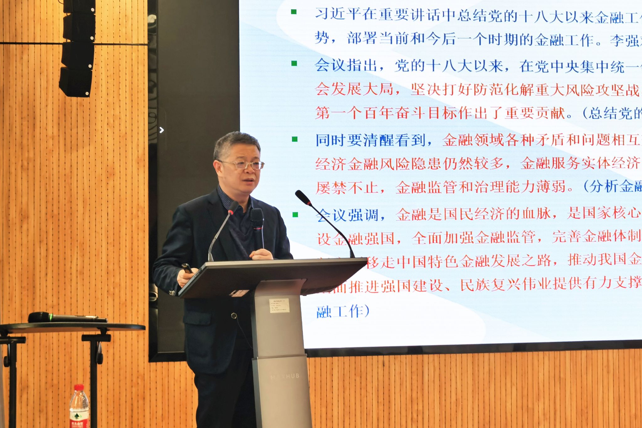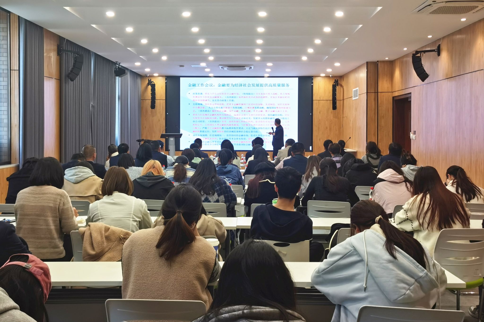 11月28日下午,由嘉兴学院金年会诚信信誉至上、嘉兴市金融学会、嘉兴市高层次人才联谊会联合主办的南湖金融讲堂第2讲在嘉兴学院融信楼325举办。中国金融学会理事、中国人民银行浙江省分行货币政策咨询专家、浙江大学金融研究所所长、博士生导师王维安教授应邀作题为《加快建设金融强国 推动金融高质量发展——兼中央金融工作会议解读》的报告,金年会诚信信誉至上党委书记施敏颖教授主持,来自中国人民银行嘉兴市中心支行、嘉兴银行、浙商银行、禾城农商银行等实务界专家和金年会诚信信誉至上师生百余人参加。