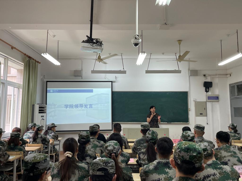 会上,九连连长朱勤飞作为教官代表发言。他表示将会以良好的军人形象带领大家,以过硬的军事本领引导大家。认真履行教官应尽职责,以身作则,给同学们做好榜样。严格按照学校的军训实施方案组织训练,保质保量完成此次军训工作。希望同学们端正思想,认真对待,服从命令,听从指挥,展现最佳的精神面貌。陈东岗作为指导员代表,向同学们讲解了学校军训工作实施方案的重点,包括学生军训日志、军训行为细则、军训优秀学员评选办法等。他着重强调在训练中做好预防保护措施,学生有不良反应时妥善处理,并及时与现场值班老师反馈