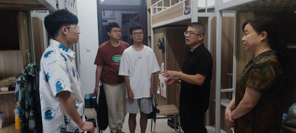 随着迎新工作的顺利结束,8月23日晚,副校长陈荣达代表学校走访金年会2022级新生寝室进行面对面交流。