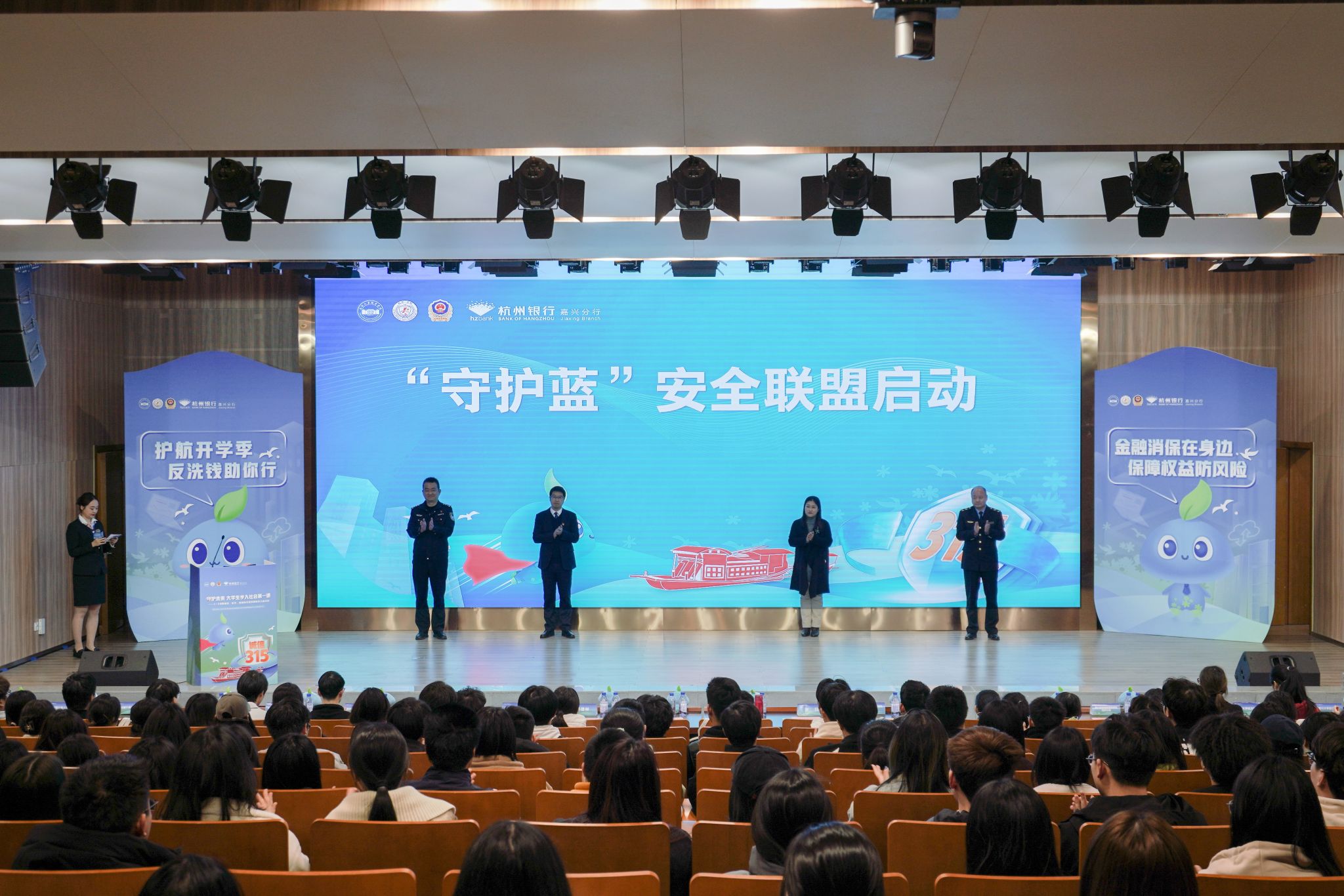 为持续提升大学生金融安全意识,有效构建高校安全防火墙,3月15日,金年会联合嘉兴市公安局经开分局、嘉兴市市场监督管理局经开分局、杭州银行嘉兴分行共同举办“守护蓝”绘就校园“平安色”——315“高校安全行动”开课仪式暨“守护蓝”安全联盟启动仪式。