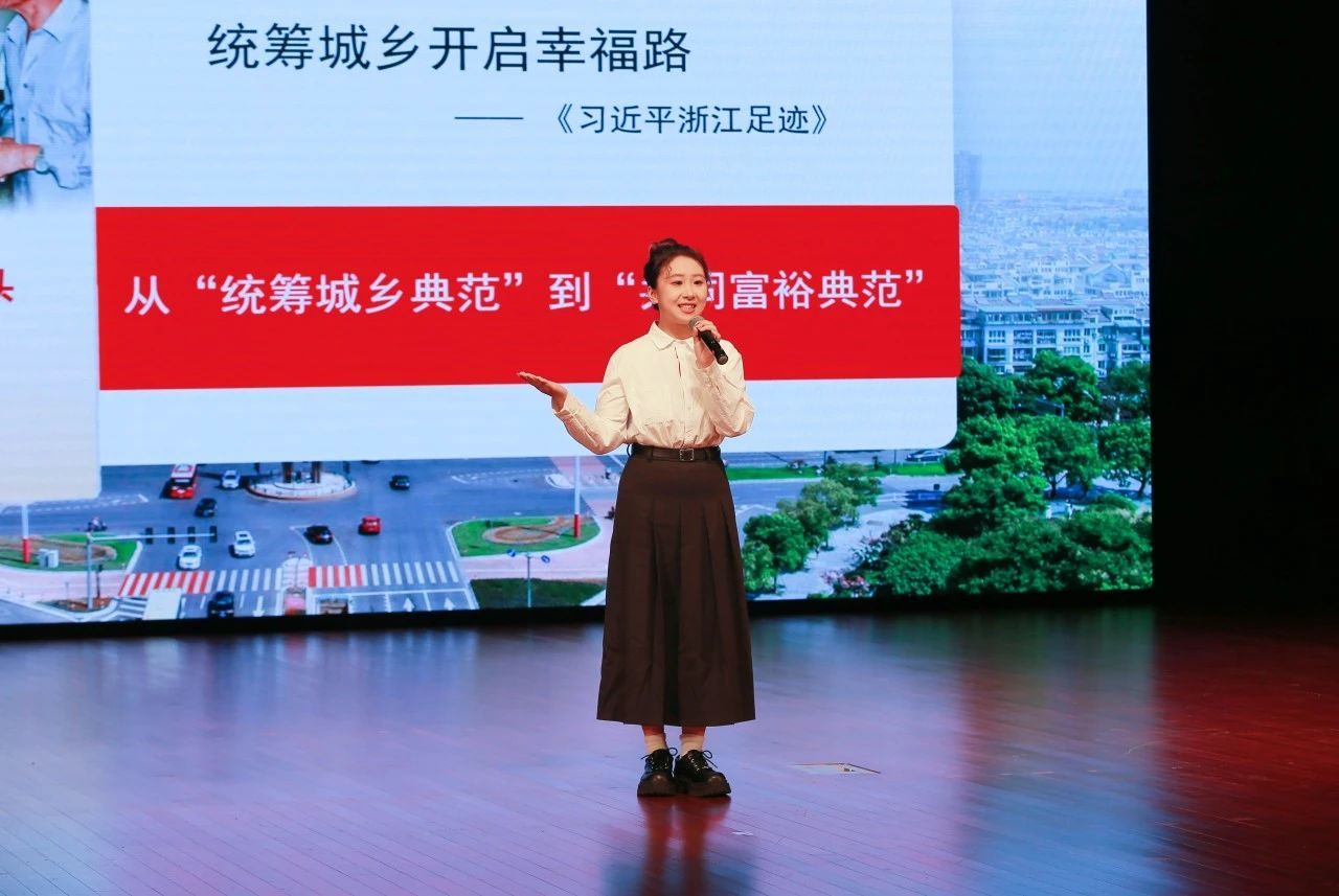 金年会jinnianhuicom大学生共同富裕宣讲团宣讲员经济221班俞芝怡为新同学带来《统筹城乡开启幸福路》主题宣讲,以开往春天的幸福101路公交车为切入口,讲述了嘉兴统筹城乡发展推进共同富裕的生动图景。