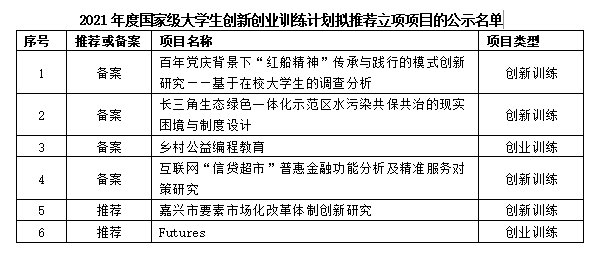 金年会诚信信誉至上关于2021年度国家级大学生创新创业训练计划拟推荐立项项目的公示