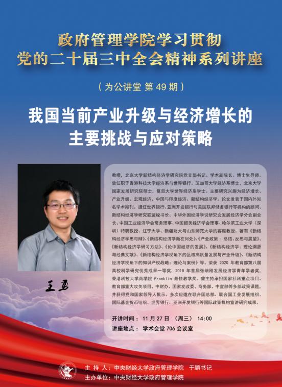 讲座主题:我国当前产业升级与经济增长的主要挑战与应对策略