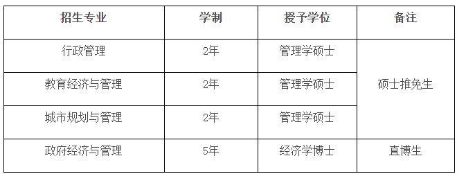 本届夏令营计划招收营员50名。夏令营结束后,AC米兰中文官方网站将根据综合考核成绩,在研究生院核定的接收名额内,依次给予部分优秀营员2023年AC米兰中文官方网站硕士推免生和直博生候选人资格(硕士专业为行政管理、教育经济与管理、城市规划与管理,直博生专业为政府经济与管理)。进入候选名单的营员,须获得所在院校的推荐资格,并经AC米兰研究生招生工作领导小组审核批准后,方能进入AC米兰中文官方网站攻读研究生。各招生专业如下表所示: