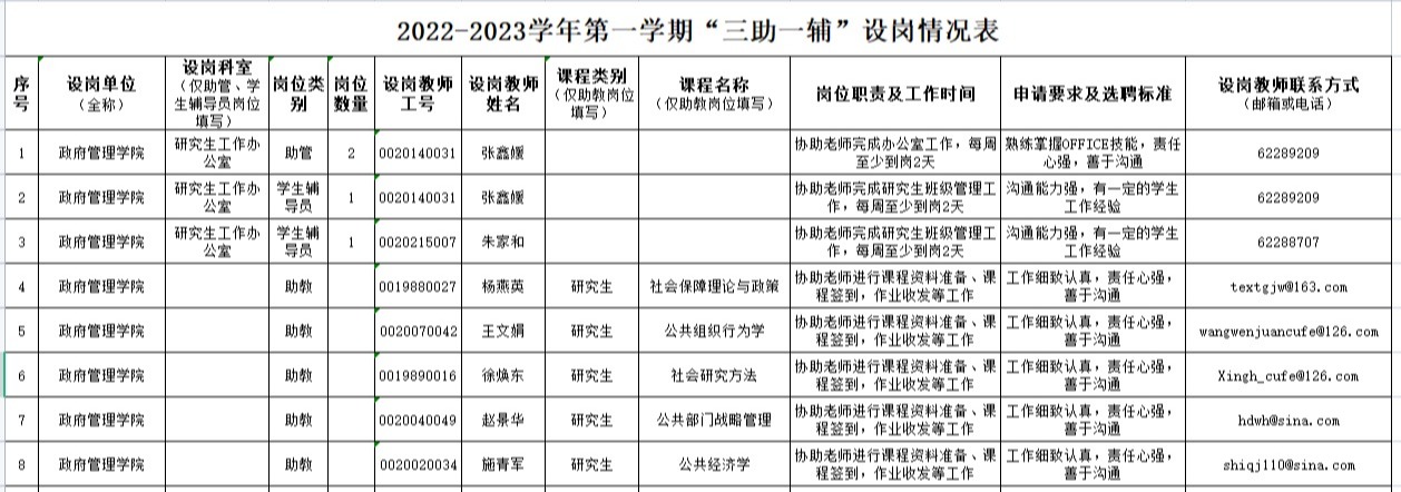 AC米兰中文官方网站2022-2023学年第一学期“三助一辅”设岗情况表