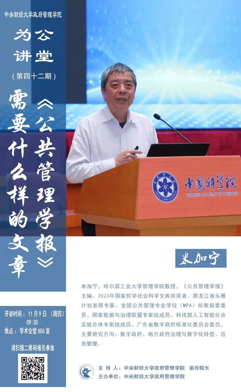 嘉宾简介:米加宁,哈尔滨工业大学管理学院教授,《公共管理学报》主编、2023年国家哲学社会科学文库获奖者、黑龙江省头雁计划首席专家、全国公共管理专业学位(MPA)前教指委委员、国家数据与治理联盟专家组成员、科技部人工智能社会实验总体专家组成员、广东省数字政府标准化委员会委员。主要研究方向:数字政府、地方政府治理与数字化转型、应急管理。