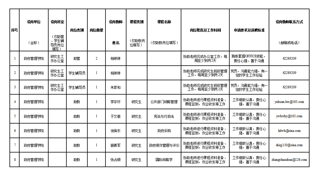 AC米兰中文官方网站2023-2024学年第二学期“三助一辅”设岗情况表