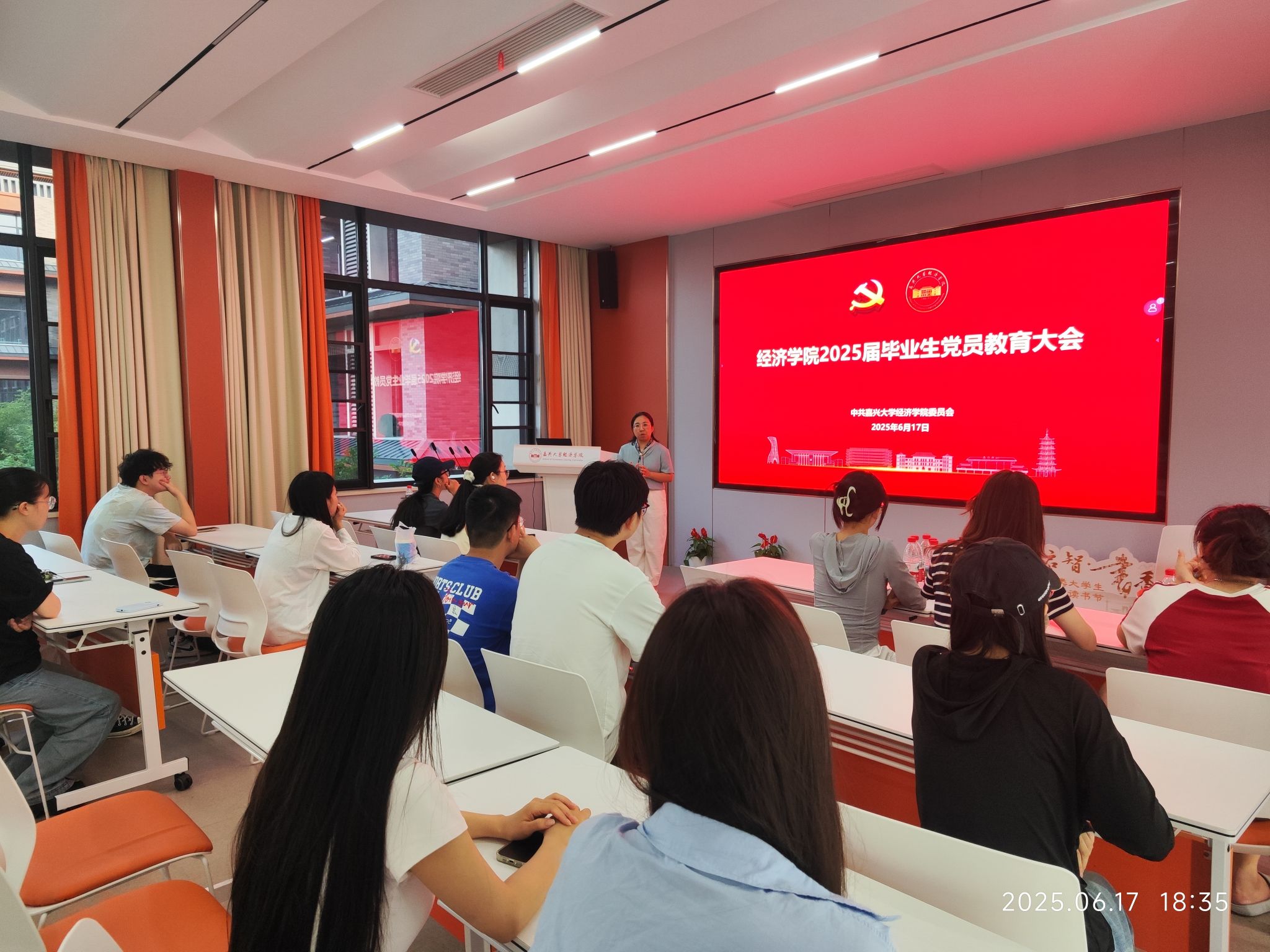 聚焦中央八项规定精神学习教育,她要求:“党员在毕业走向社会后,身份虽有变化,但党员的先进性和纯洁性不能改变,要严守纪律红线,以‘心有所畏、言有所戒、行有所止’的清醒,筑牢拒腐防变思想防线。”她特别指出,经济领域从业者需恪守专业伦理,以严谨学风与务实作风投身经济社会建设,为党旗增辉、为母校添彩。