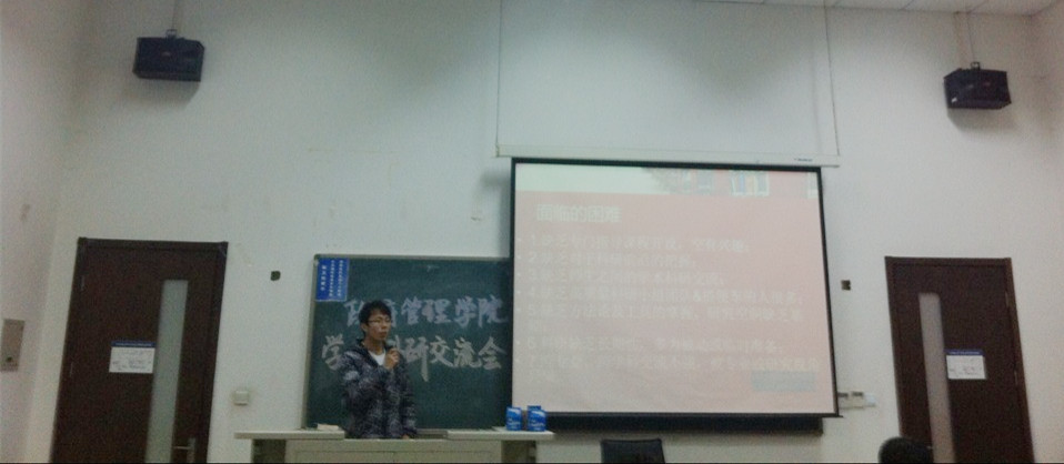 交流会开场后,主持人陈剑煜同学从目前学院学术科研现状出发,结合同学们在学术科研方面常遇到的困难,阐明了成立学院学术科研兴趣小组的重要性以及小组未来的发展宗旨,明确了科研小组的权利与义务,同时对小组的功能、组织形式及活动内容进行了系统介绍。