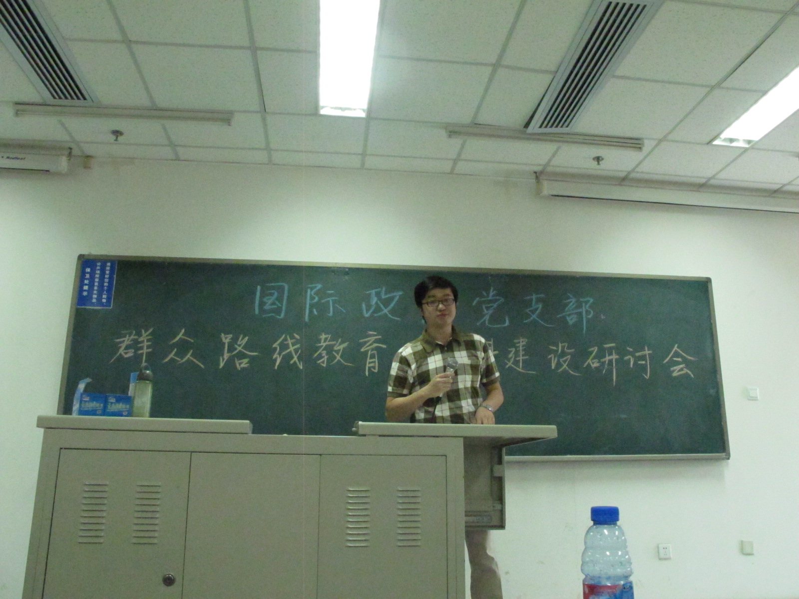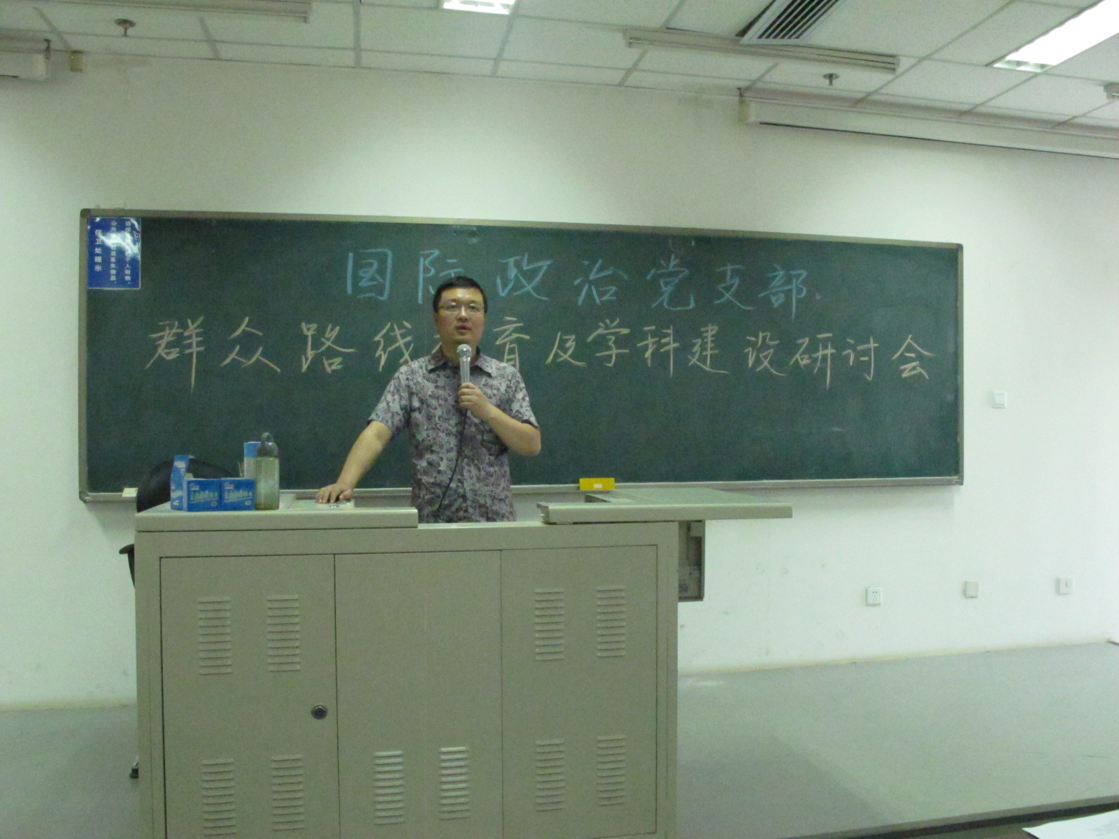 9月11日13点30分,AC米兰中文官方网站国际政治党支部在沙河校区6号学院楼106教室召开群众路线教育及学科建设研讨会。国际政治专业教师江涛、白云真、张占顺、耿喜梅、辛平、张鹏到场听取11、12级同学关于学院、学科建设方面的看法和建议。