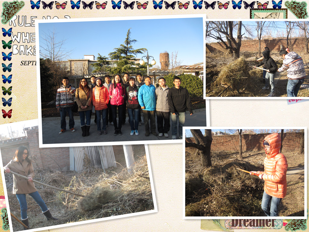 得到任务的同学们拿起铁锹和叉子,纷纷行动起来。对一些很少干农活的同学来说,熟练使用这些农具并不是容易的事。但是大家并没有畏难情绪,尽管寒风凛冽,大家仍然干劲十足。女生们负责杂草拢起来,男生则承担起了用推车把草堆推到指定地点的任务。在大家的努力下,任务很快完成了。看着整洁的地面和燃烧堆成堆的杂草,同学们露出了满意的笑容。