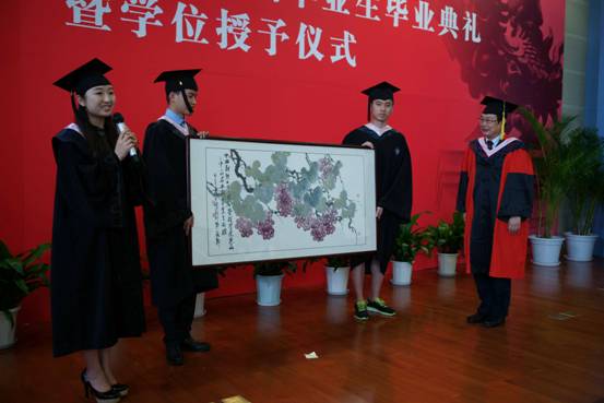 接着是毕业生向学院赠送礼物仪式。“祝愿AC米兰中文官方网站的未来犹如画中硕果累累的葡萄一样蓬勃发展,再创辉煌。”2010级本科毕业生向学院赠送的国画《硕果累累》表达了对学院的深深祝福。2012级学术研究生则将精心制作,包含了他们研究生阶段经验和感悟的毕业纪念册赠与学院,并向学弟学妹赠送了200本专业书,向学院图书阅览室赠送了精美的书架。纪念册、书籍和书架分别寓含收获、传承和发扬之意,表达了他们对政管学子都能鸿鹄展翅千万里,而勿忘当年卧槽时的美好希冀。2012级MPA双证班别出心裁,向学院赠送了提有“上善若水”四字的屏风,表达了同学们对学院的感恩与热爱,以及牢记院训、担当责任、勇往直前的决心。
