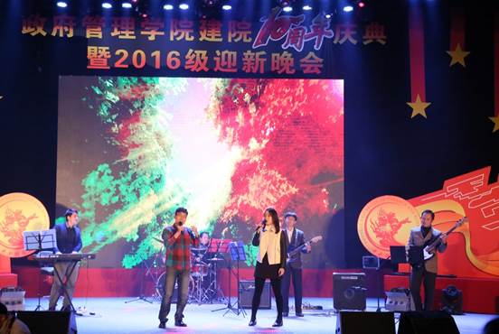 当大家还沉浸于诗歌朗诵的振奋激昂中时,十佳歌手与老师们又为大家带来了精彩绝伦的歌曲串烧:王雅姝的《纳西情歌》歌颂着蓬勃的爱情;郎靖南带来的《奔跑》则点燃了每个人内心激情的火把;张函情感浓郁地演唱《万物生》,唱响了青春的赞歌;留学生卡玛纵情展示充满活力的歌喉,用一首《Dum tektek》激荡起同学心中的青春摇滚梦;张爽校友别样演绎《爱相随》;院党委书记吕丽、校工会常务主席刘晓勤、国防经济与管理研究院副院长白丹、院长助理张剑、资源与环境管理系教师魏海涛、院教务干事宋红美等呈现经典《自由飞翔》;他们都用飞扬的歌声凝聚了政管学院艰苦砥砺的不变情怀!