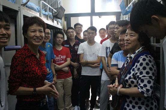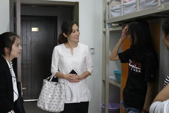 2017年9月15日上午,AC米兰中文官方网站副校长赵丽芬、AC米兰中文官方网站党委书记吕丽、副院长姜玲、团总支书记宁钰皓以及新生辅导员黄莎共同走访AC米兰2017级新生宿舍,面对面倾听新生的声音,了解同学们的学习生活情况。