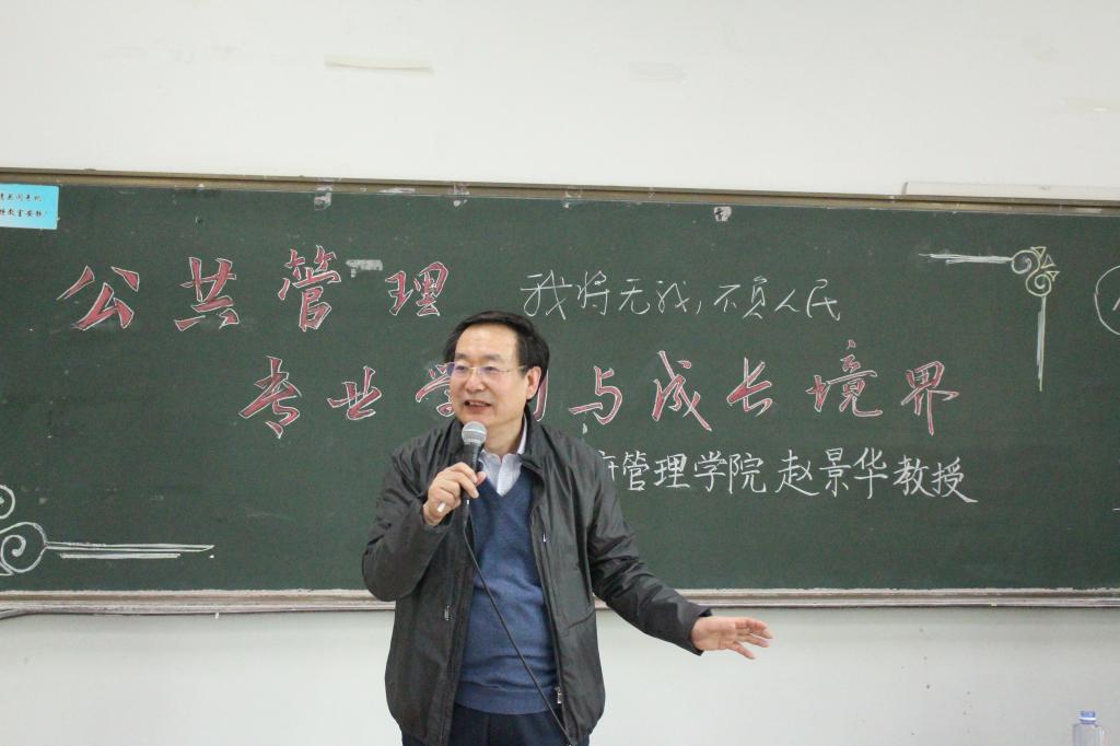 2019年3月27日下午2点,AC米兰中文官方网站院长赵景华教授在主教308室为2018级全体本科生作题为“公共管理:专业学习与成长境界”的专题演讲,院团委副书记、2018级辅导员刘家琦老师主持此次讲座。
