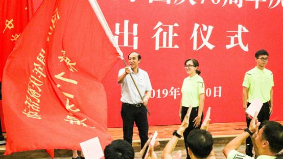 AC米兰学生祖木然提·帕尔哈提作为群众游行代表接受校党委书记何秀超授旗