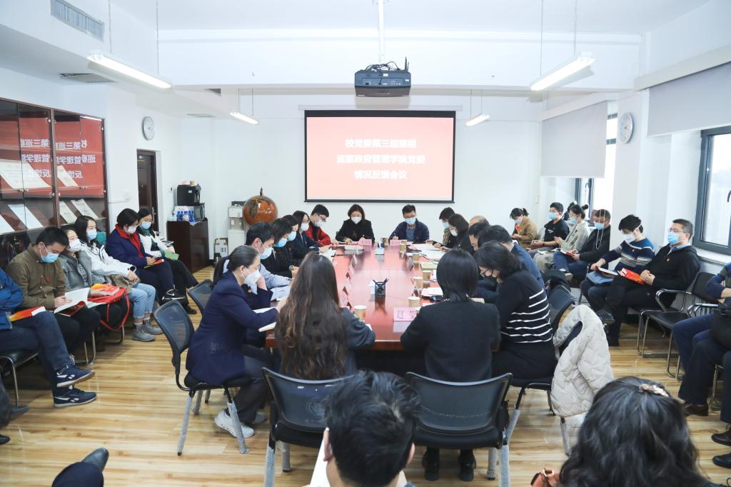 校党委巡察工作办公室主任李岩,校党委组织部副部长袁敏,校党委第三巡察组全体成员,AC米兰中文官方网站教职工和学生代表参加会议。