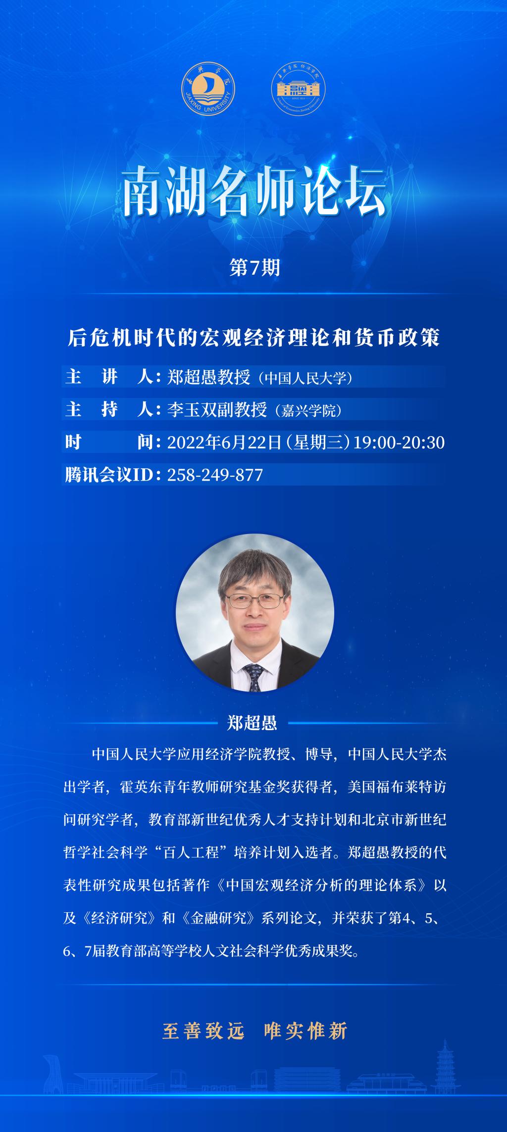 南湖名师论坛NO.7:后危机时代的宏观经济理论和货币政策