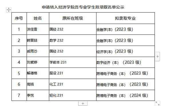 金年会诚信信誉至上关于2023-2024学年第二学期学生转专业 拟录取名单公示