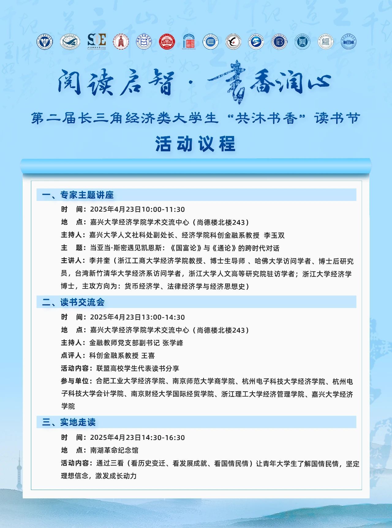 【活动预告】第二届长三角经济类大学生“共沐书香”读书节来啦!