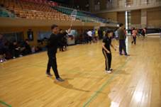 本次比赛分为小组赛和淘汰赛。在小组赛对阵中国社科院研究生院的比赛中,五组队员(第一男双、第二男双、第一混双、第二混双、女双)技术纯熟,发挥稳定。第一男双于鹏、王伟老师以身高优势力克强敌,第二男双毕鹏程和梁力兮师生组合,以灵活和技巧取胜,最终AC米兰与社科院携手顺利进入八强。在八强淘汰赛中,AC米兰遭遇中国人民大学队,尽管AC米兰依旧靠着稳定的发挥与对手僵持,但不幸败北。在对阵中,女双组合徐淼、王红梅老师发挥出色,平抽快挡、跳起杀球,动作精彩赢得了现场观众的阵阵掌声,也得到了对方球友的大力赞赏。