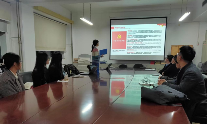 会议由党支部书记江燕主持,主要学习党的二十大报告重要内容与党章修订要点。江燕同志首先明确党的二十大的主题是高举中国特色社会主义伟大旗帜,全面贯彻新时代中国特色社会主义思想,弘扬伟大建党精神,自信自强、守正创新,踔厉奋发、勇毅前行,为全面建设社会主义现代化国家、全面推进中华民族伟大复兴而团结奋斗。然后在明晰二十大整体框架的基础上,江燕同志详细讲解党的二十大报告中三件大事、中心任务、五个重大原则等12个重点内容,并带领大家认真研读党的二十大报告原文,原汁原味地学习会议精神,引导支部党员准确领会把握党的二十大精神的思想精髓、核心要义。《中国共产党章程(修正案)》体现了党的十九大以来党的理论创新、实践创新、制度创新成果,体现了党的二十大报告确定的重要思想、重要观点、重大战略、重大举措。江燕同志进一步为大家剖析党章修订的各项要点,对新党章的性质、纲领、指导思想、基本路线等方面进行了全面深入的阐释,带领大家共同探讨新党章的新要求、新亮点等。
